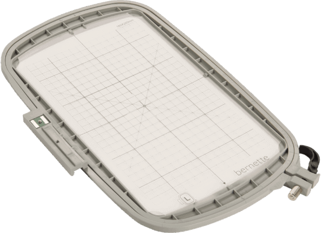 La pandereta de bordado grande es una herramienta indispensable para crear patrones de bordado grandes y detallados. Tiene una superficie de bordado máxima de 16,0 × 26,0 cm (bernette Chicago 7: 11,0 x 17,0 cm) y proporciona suficiente espacio para diseños de motivos más grandes y complejos en textiles y ropa para el hogar. La plantilla (incluida) garantiza el posicionamiento preciso del proyecto de bordado dentro del aro de bordado. Por lo tanto, se pueden crear proyectos de bordado simples y también complicados en un instante.